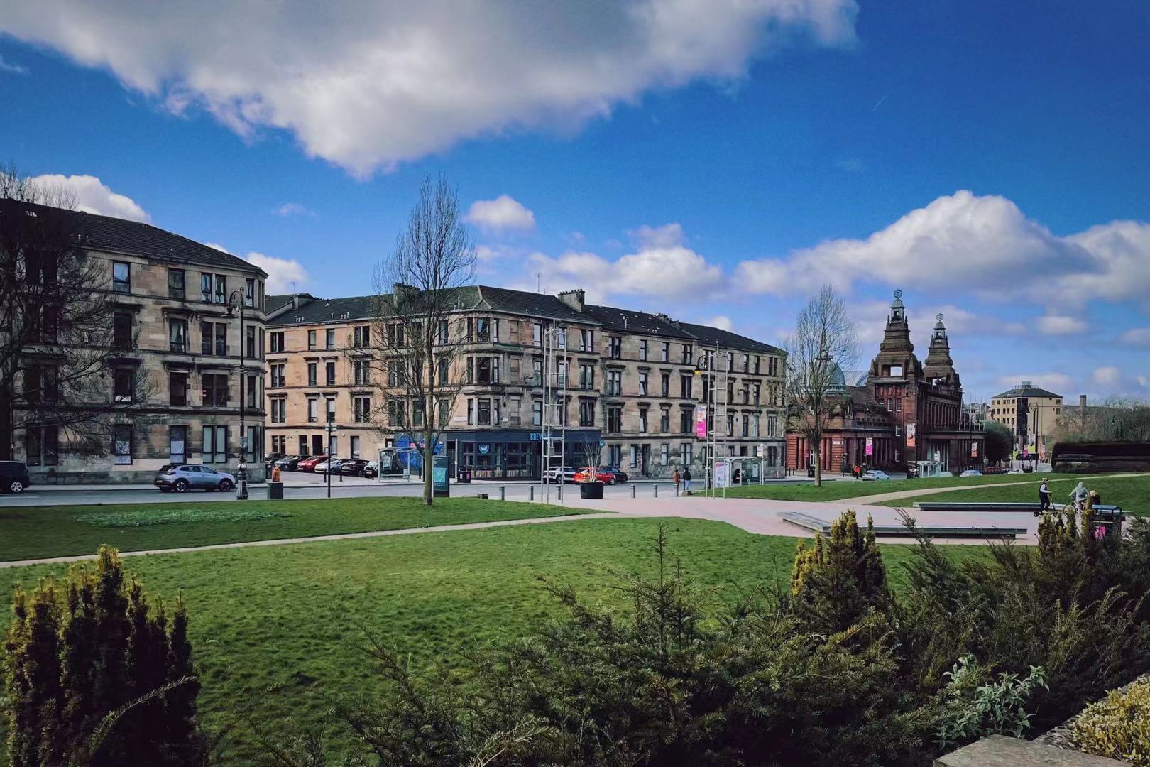 我住在离学校比较近(指过马路就是学校)的学生公寓区,附近的留学生还是挺多的。虽然 Glasgow 是苏格兰人口最多的城市,但是这边的人相比国内还是挺少的。出来溜溜的人们也都比较随意,在外面走路的 local 基本上没人带口罩,只有去室内购物才会注意个人防护。