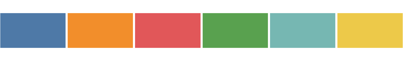palette = ["#4E79A7", "#F28E2B", "#E15759", "#59A14F", "#76B7B2", "#EDC949"]